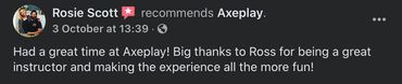 Located an easy drive from Bristol, it was so much more fun than I had imagined it could be. Very satisfying when the axe goes in and managed to get 2 bullseyes after many attempts. The staff were super friendly and very encouraging even though I was rubbish to start with but made good progress thanks to their guidance. The atmosphere was fabulous, really professional and very well themed. I was also impressed that it was heated. Safety was superb with clear instructions given and very well set up. Highly recommended 5 stars.